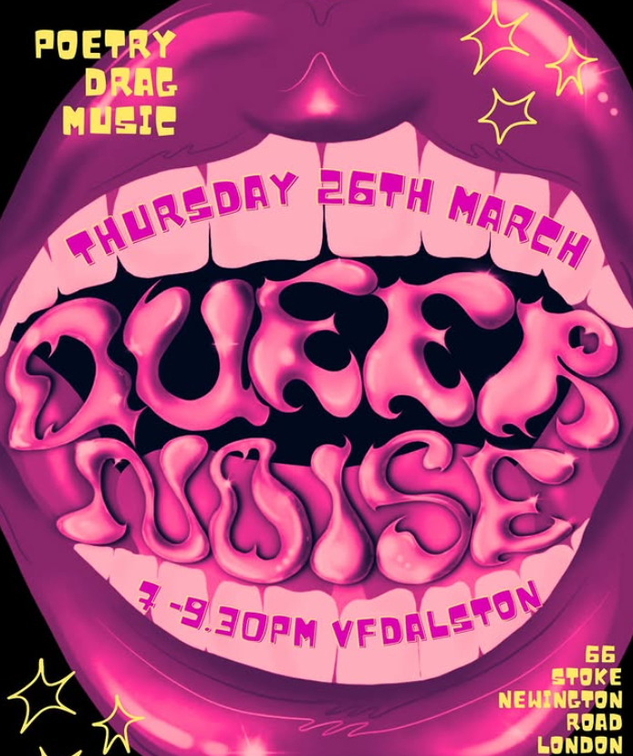 Join us on Thursday 26th March for an incredible line up of mega talented poets, musicians and performers bringing you simultaneously silly and sensitive explorations of queer community, identity, and relationships.