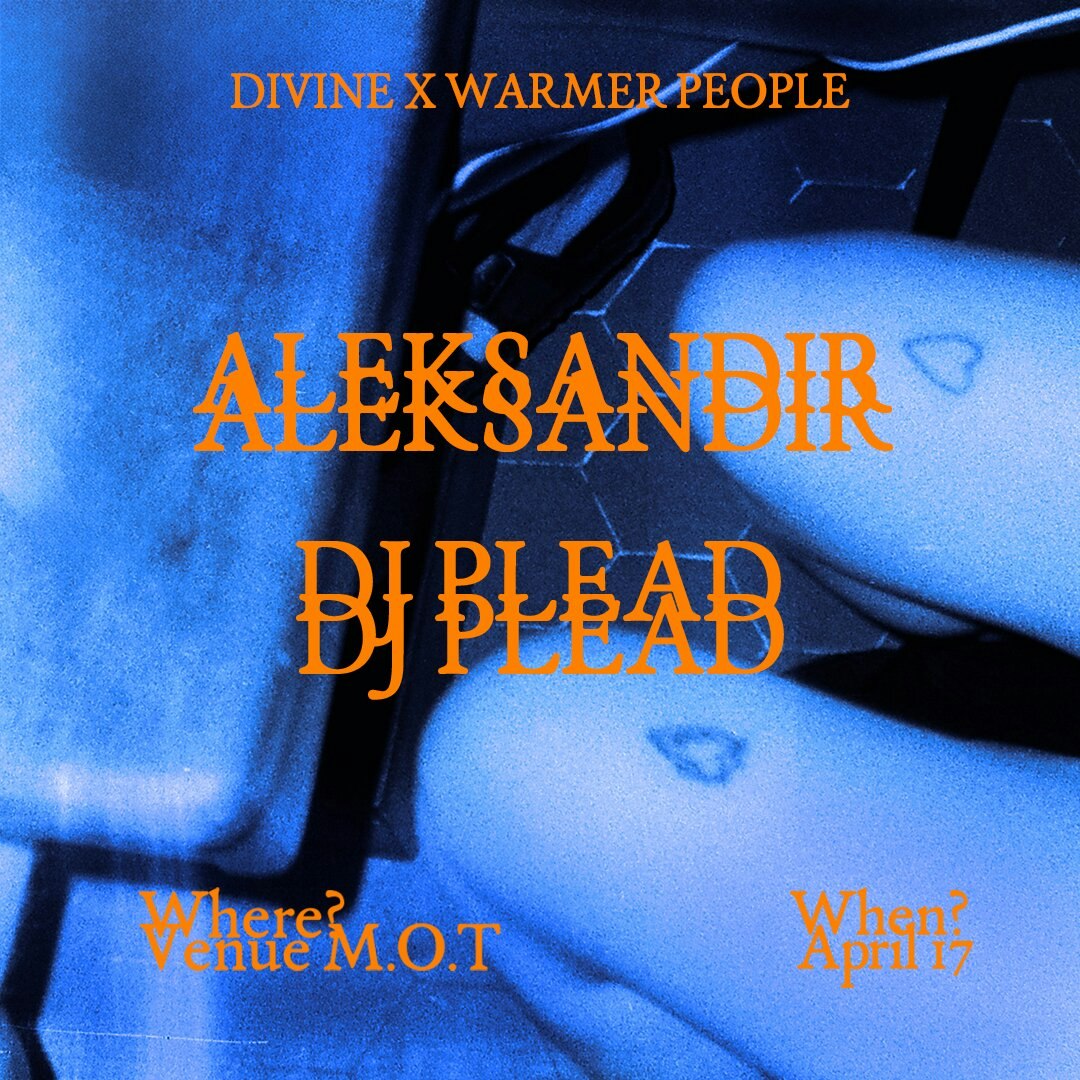 Warmer People & Divine link up once again, this time taking over South London’s underground stronghold venue MOT. For this chapter of the collab, the Paris/London axis bring forward Aleksandir as curator, championing his sharp raw energy vision by inviting the relentlessly driving and genre-defying DJ Plead to take the decks. Expect a night where cutting-edge grooves meet subterranean intensity. a collision of styles that reflects both communities at their most restless and refined.