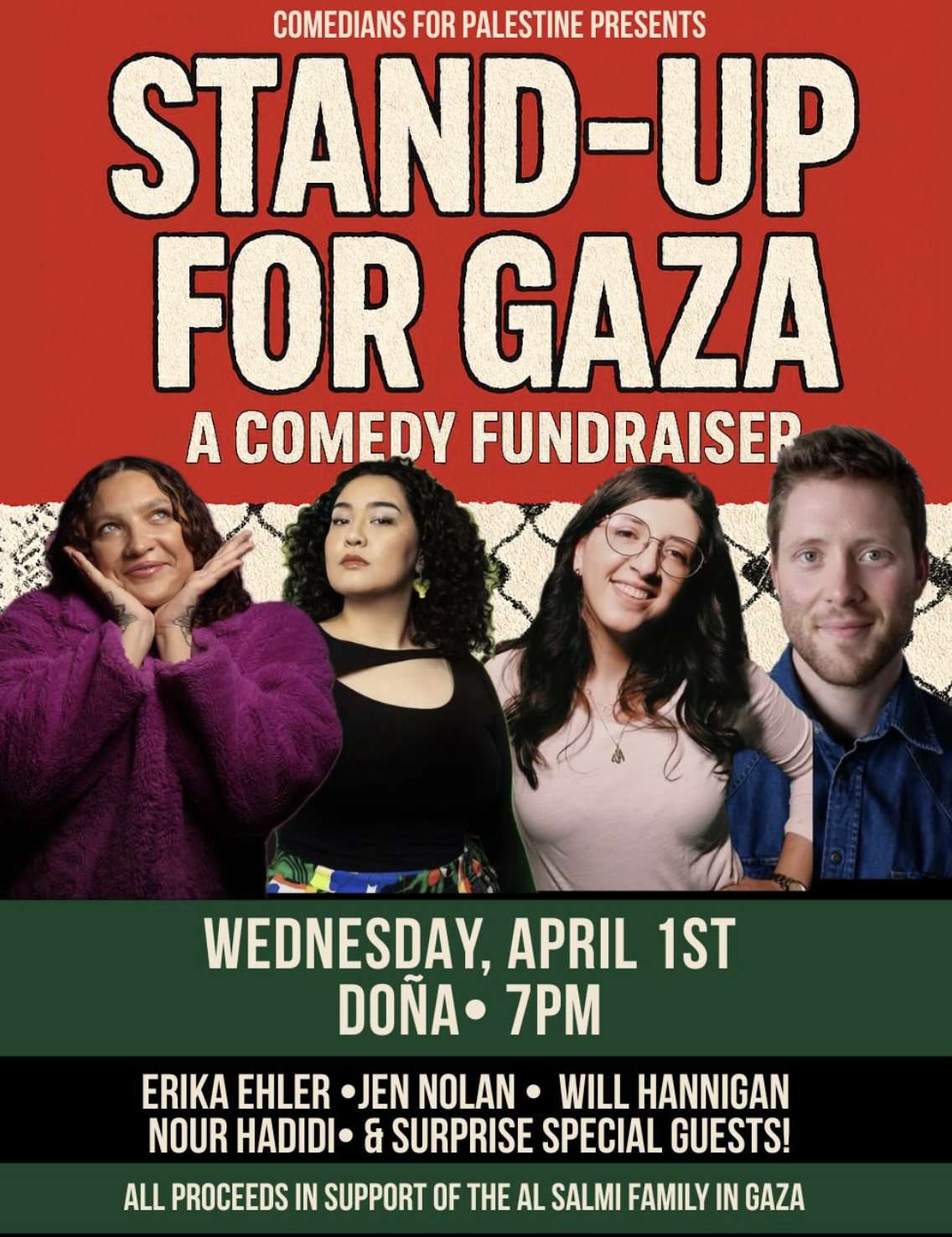 Join us for a powerful night of laughter and solidarity at Dona on Wednesday, April 1st at 7PM.